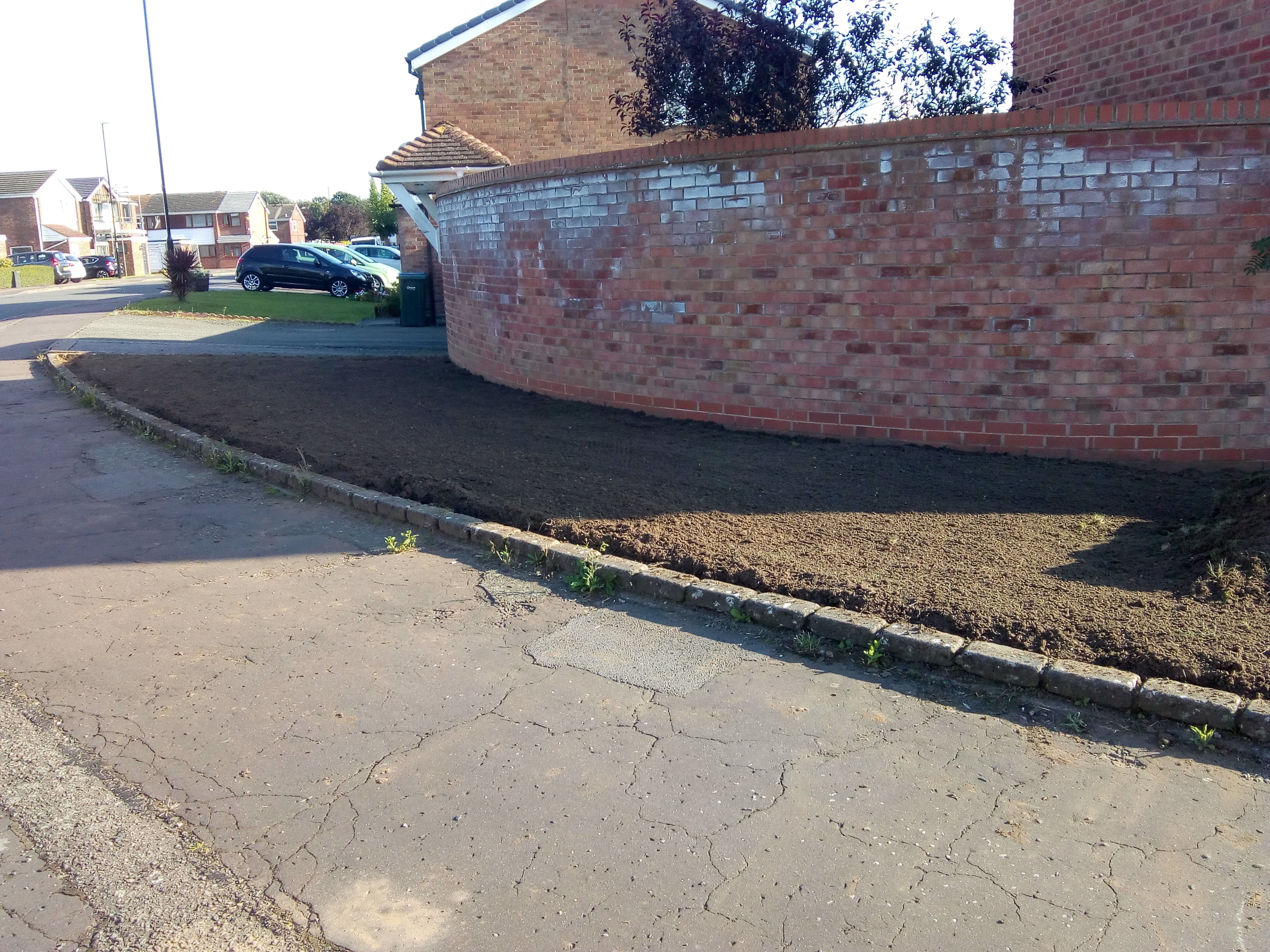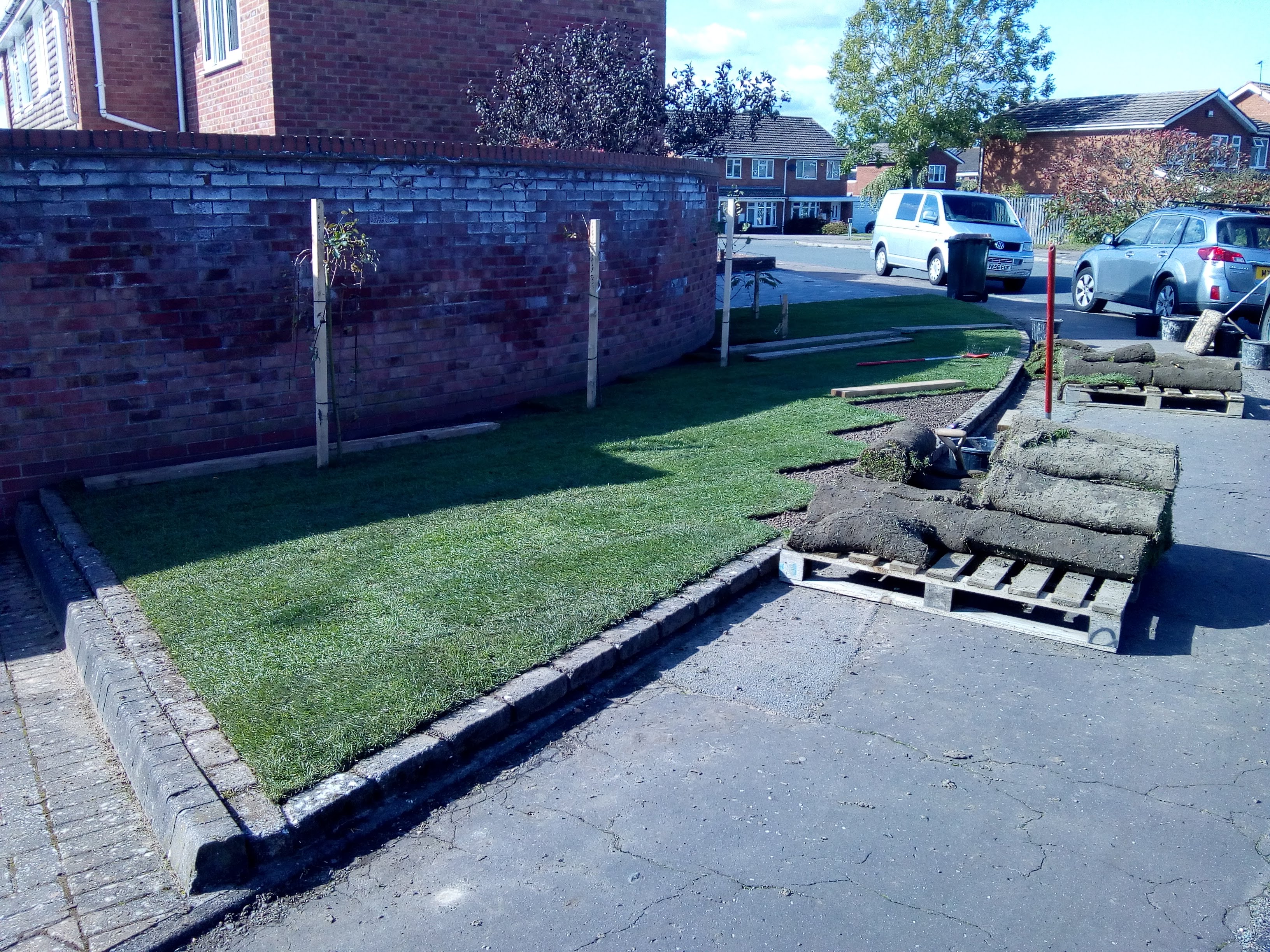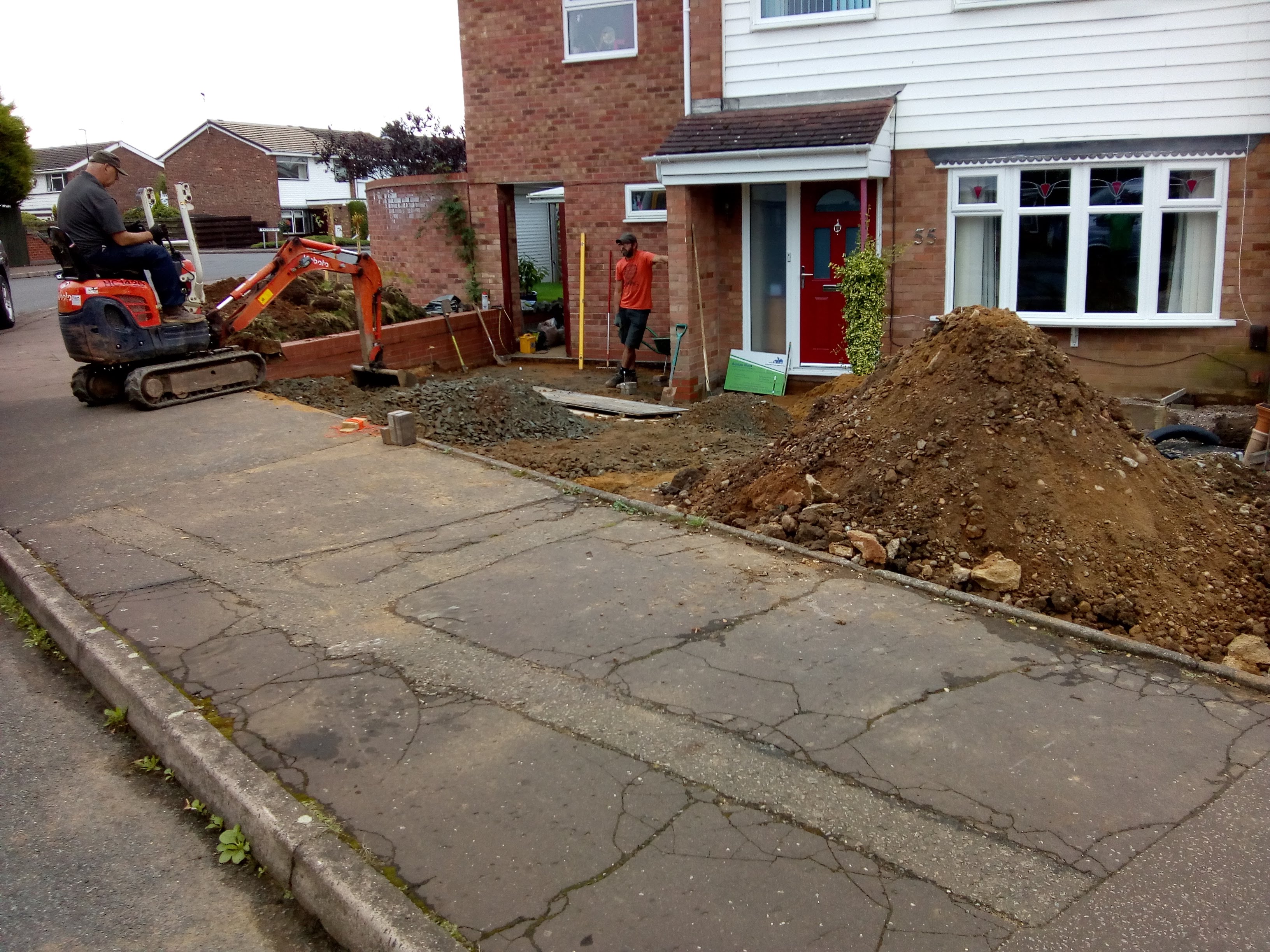 From Excavation to installing soakaways and installing new block paving including new lawn.