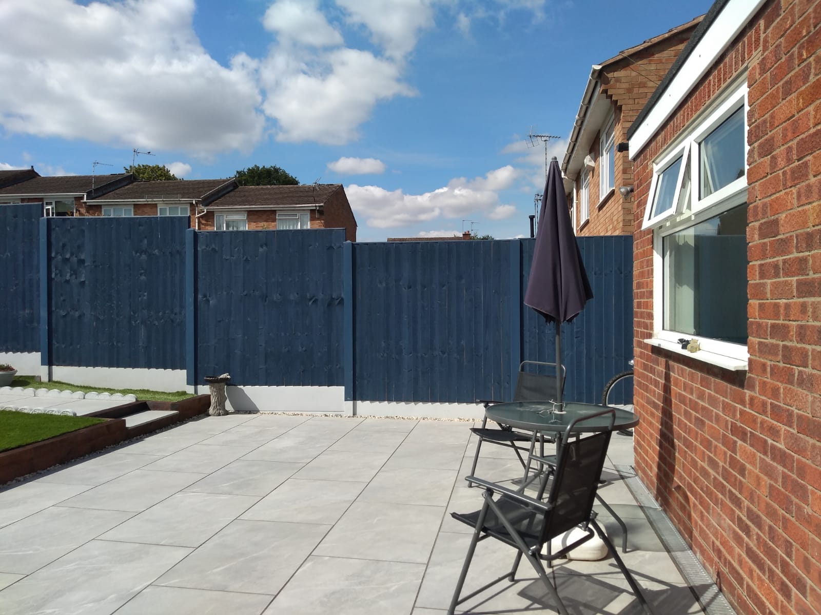 The job in mount nod took on fencing, porcelain patio, artificial grass and field gates.
