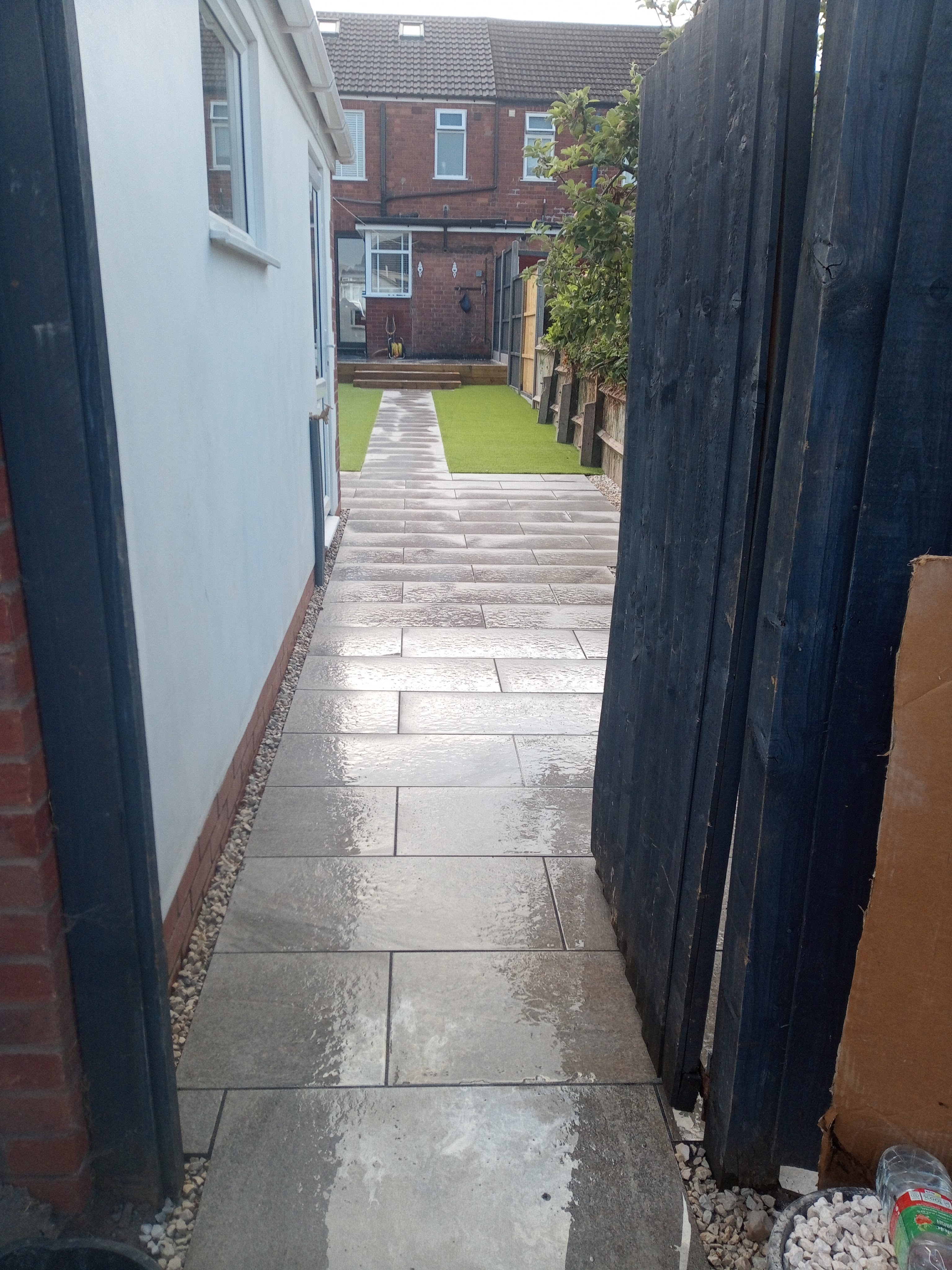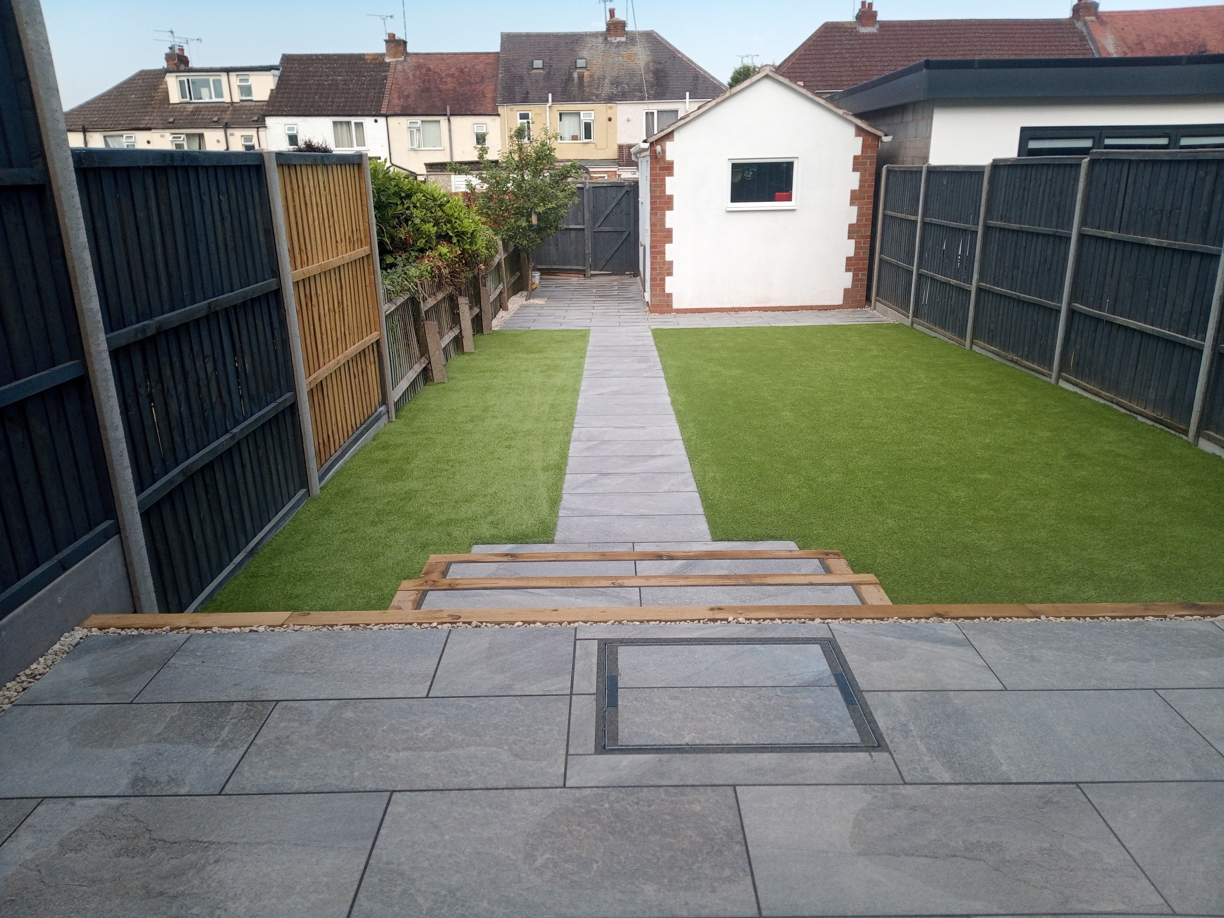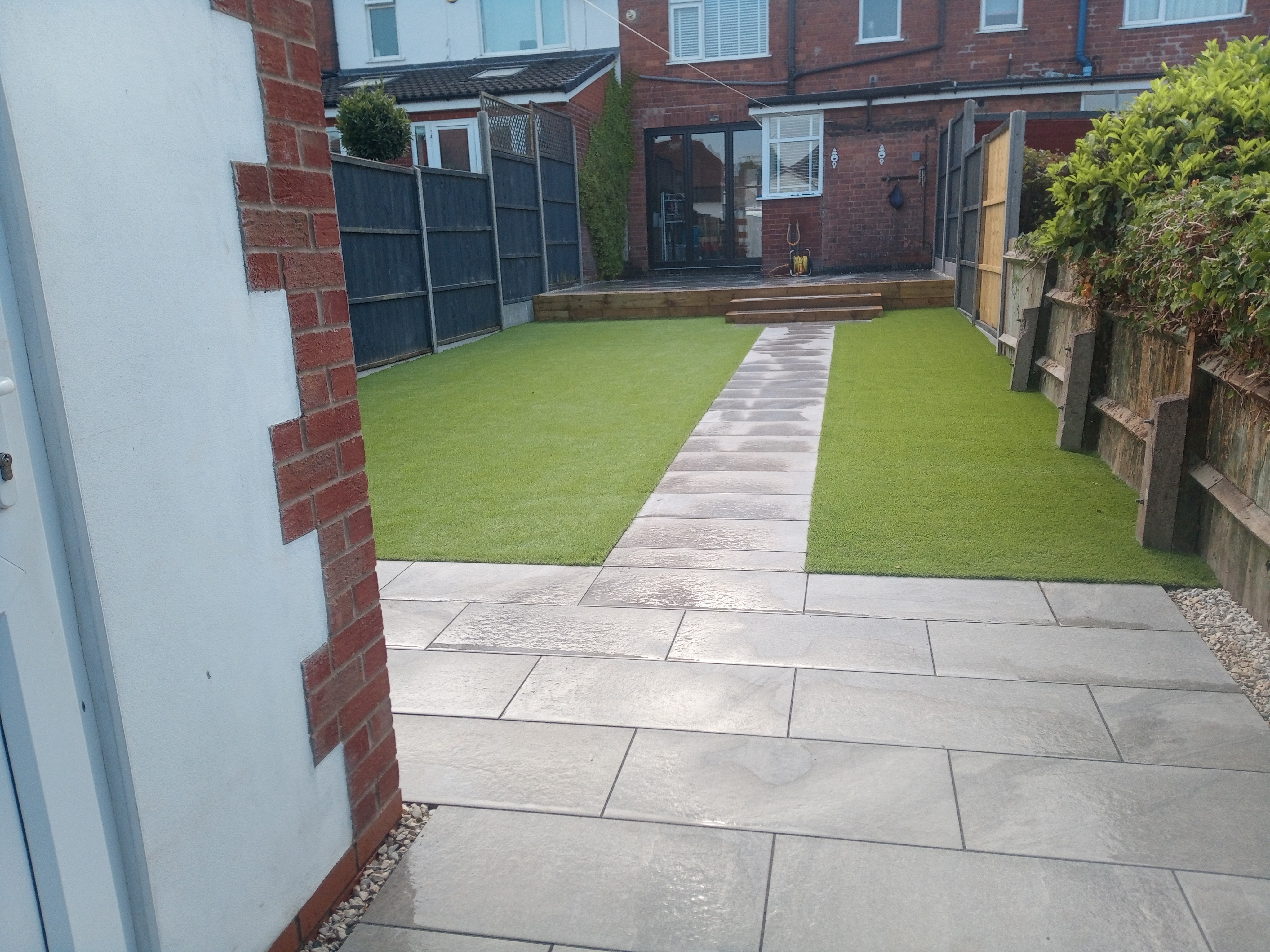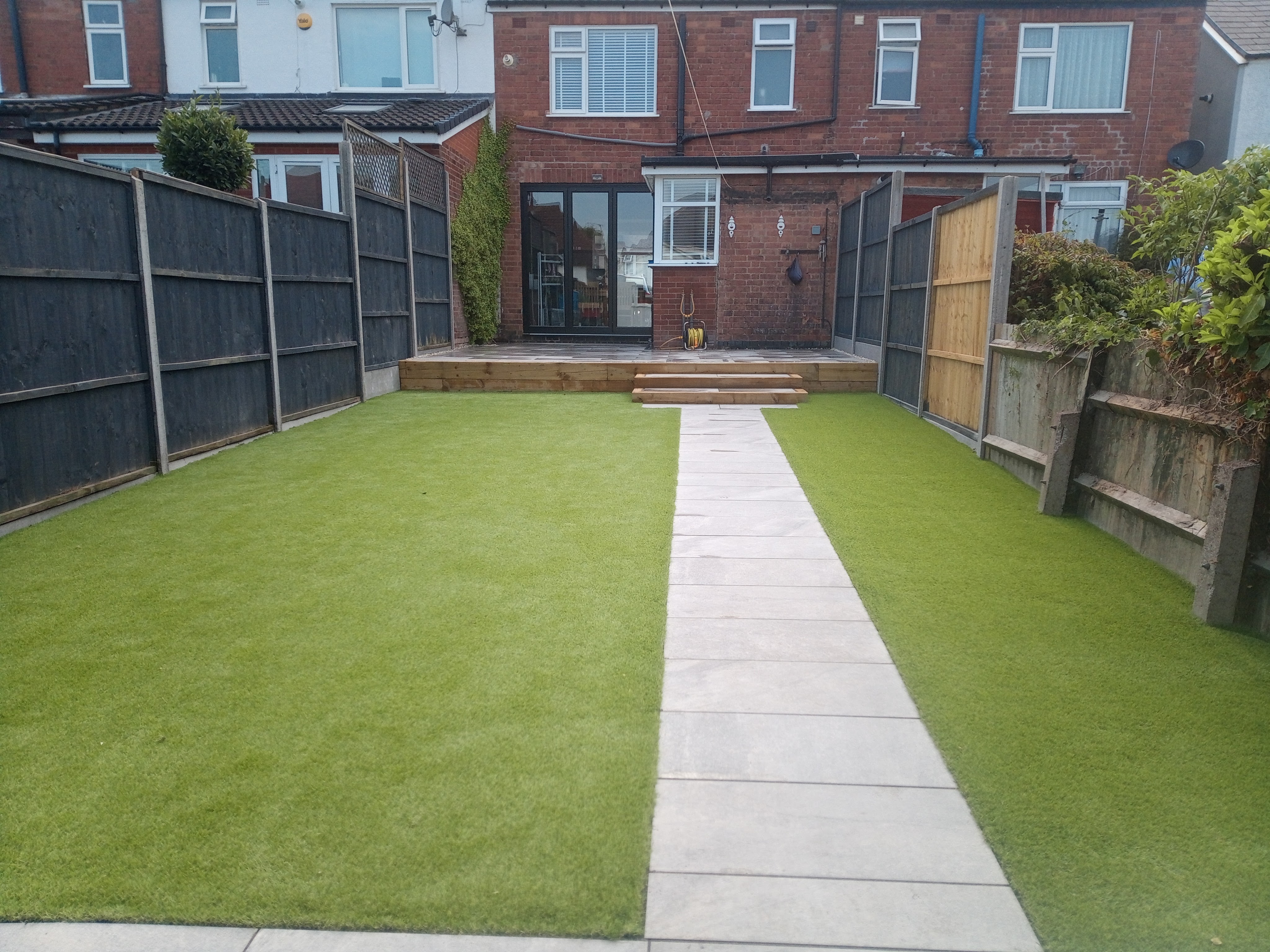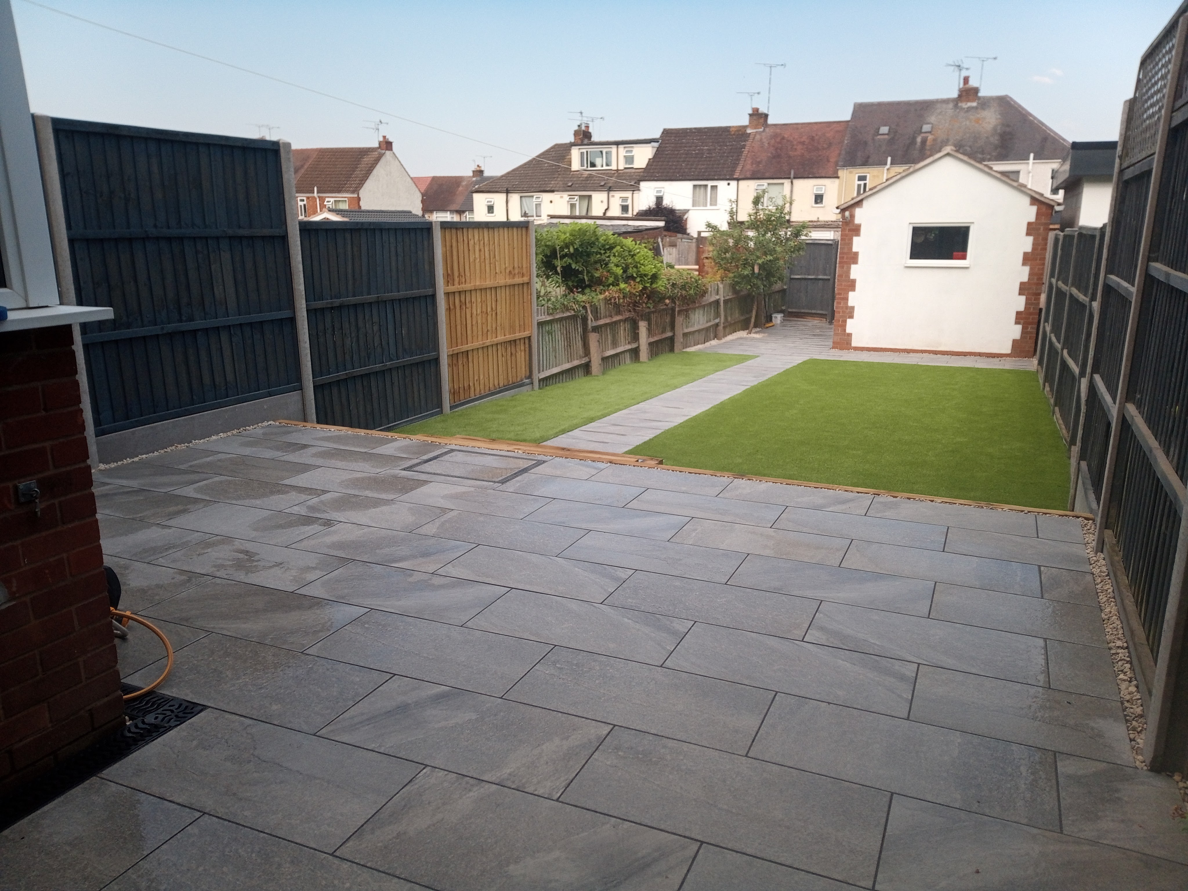 From full excavation, laying porcelain patio and pathway and installation of artificial grass.